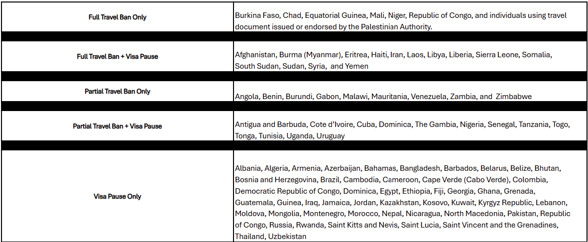 Full Travel Ban / Partial Travel Ban (Immigrant Visa Pause)